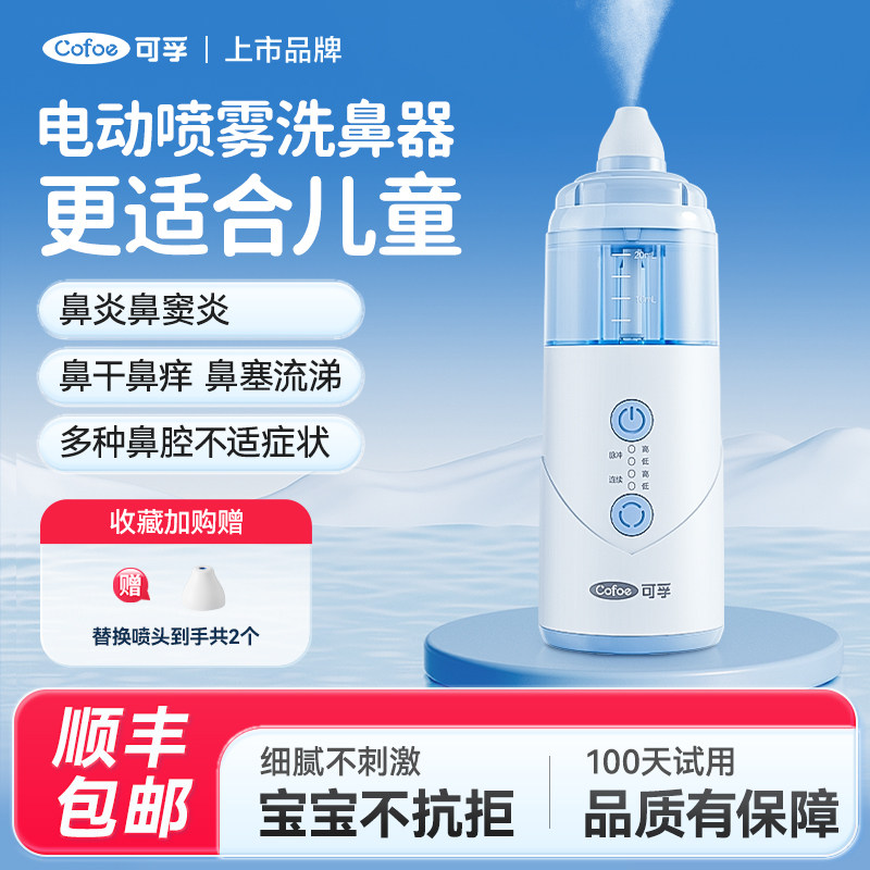 可孚医用儿童电动洗鼻器鼻腔冲洗器过敏性鼻炎喷雾雾化海盐水家用