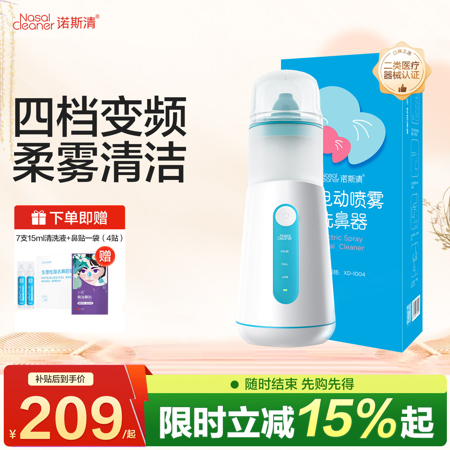 诺斯清电动喷雾生理盐水洗鼻器鼻腔冲洗器生理性儿童鼻炎雾化清洗