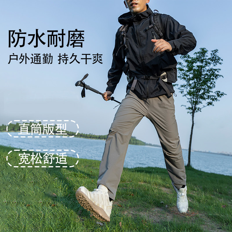 骆驼男装休闲裤男防水冬季加厚保暖拒水白鸭绒羽绒裤直筒运动长裤