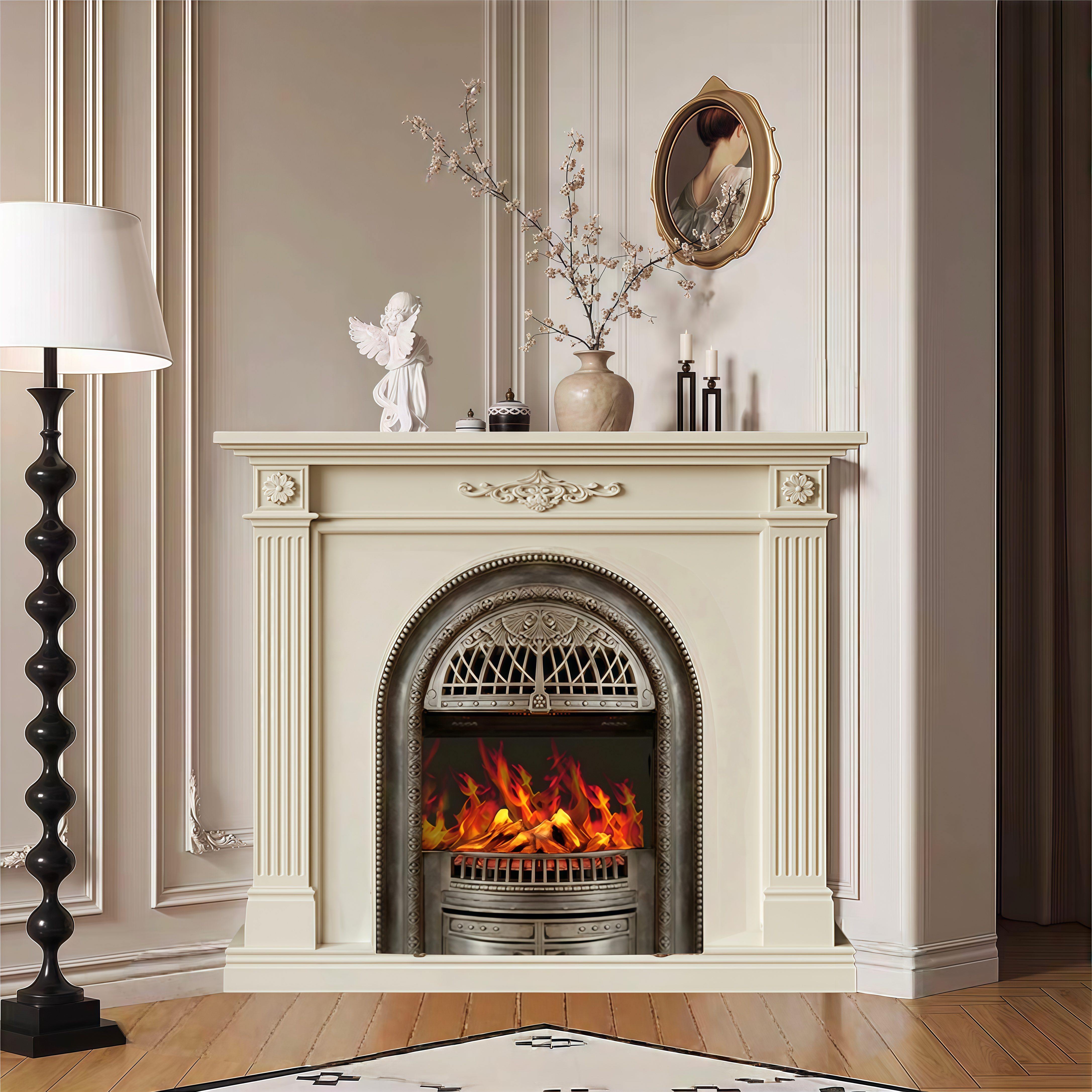 法式复古实木壁炉装饰柜奶油白现代客厅壁炉欧式边柜美式置物玄关