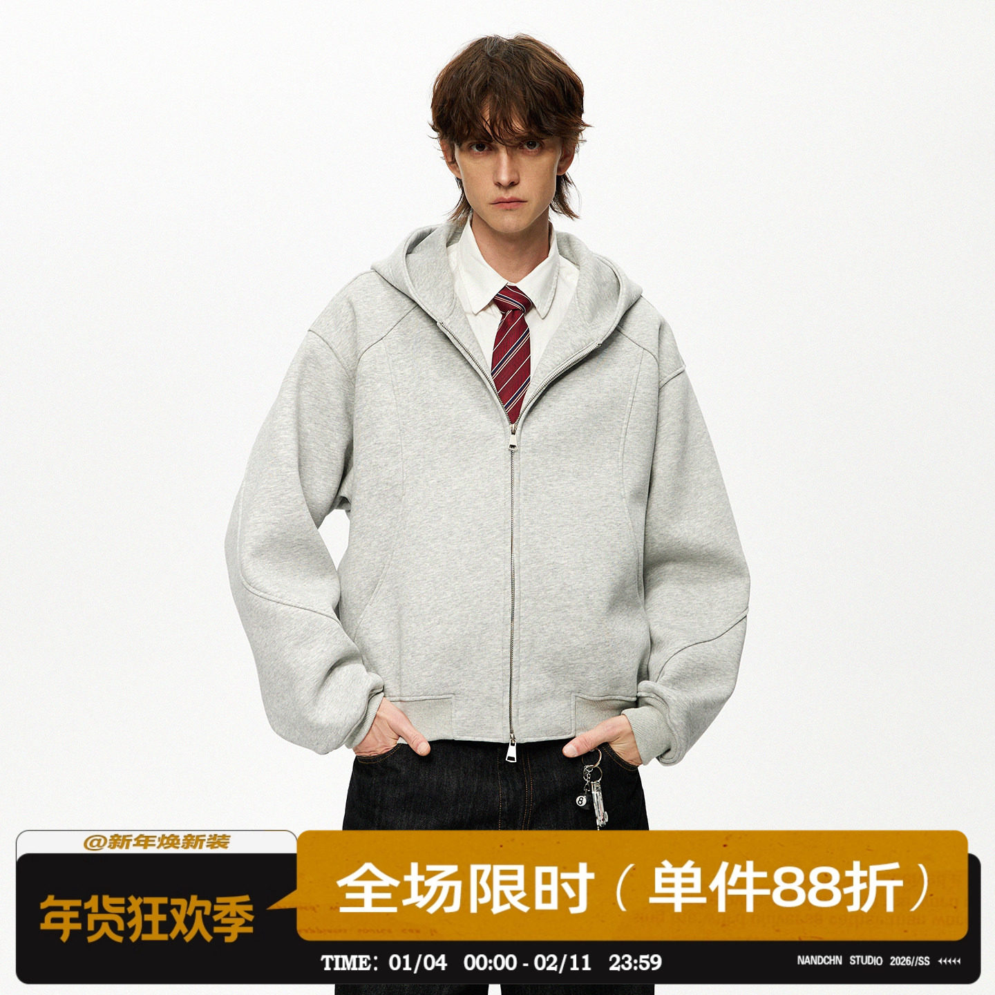 FDR巨好看春秋重磅上衣男灰色双拉链开衫空气层连帽卫衣外套女款