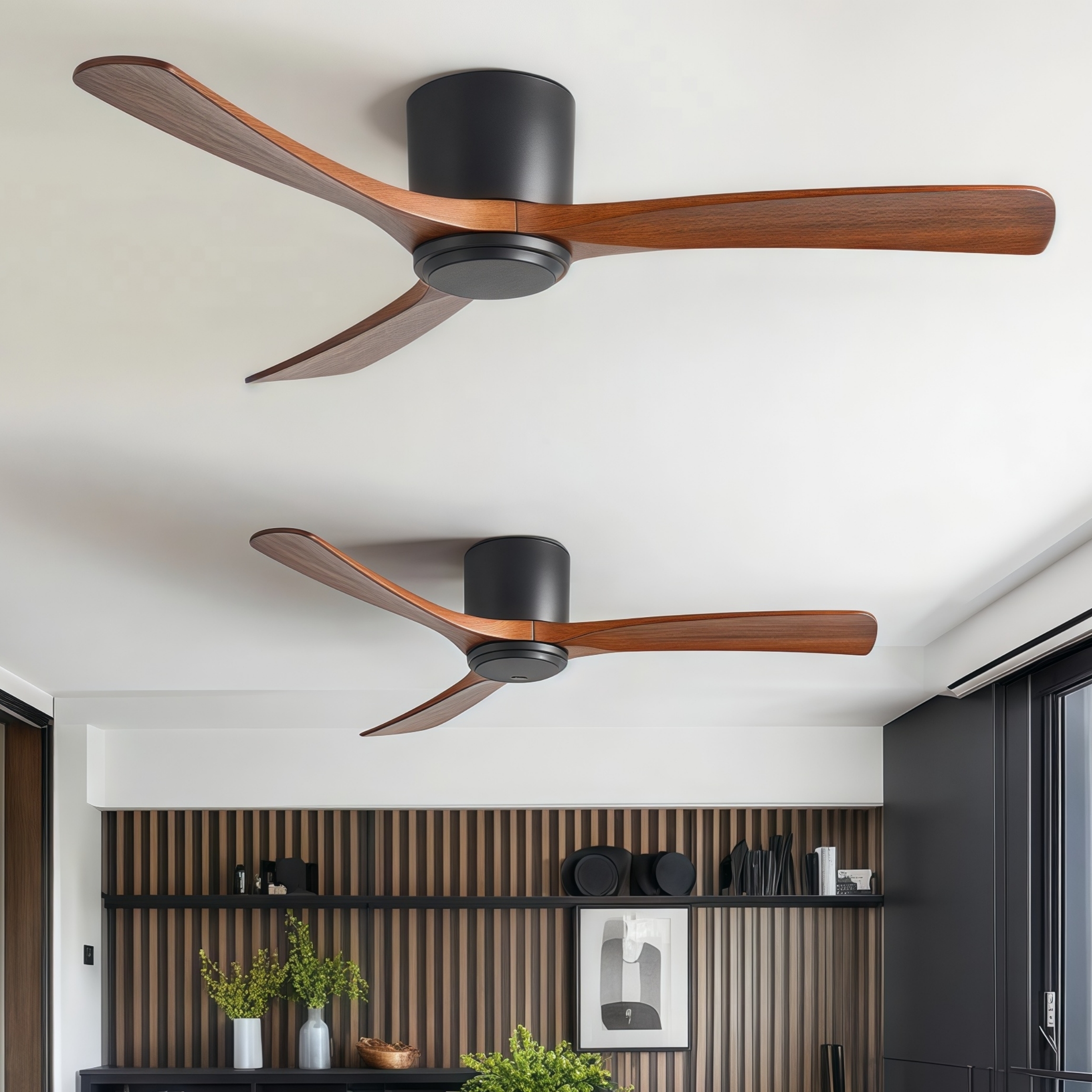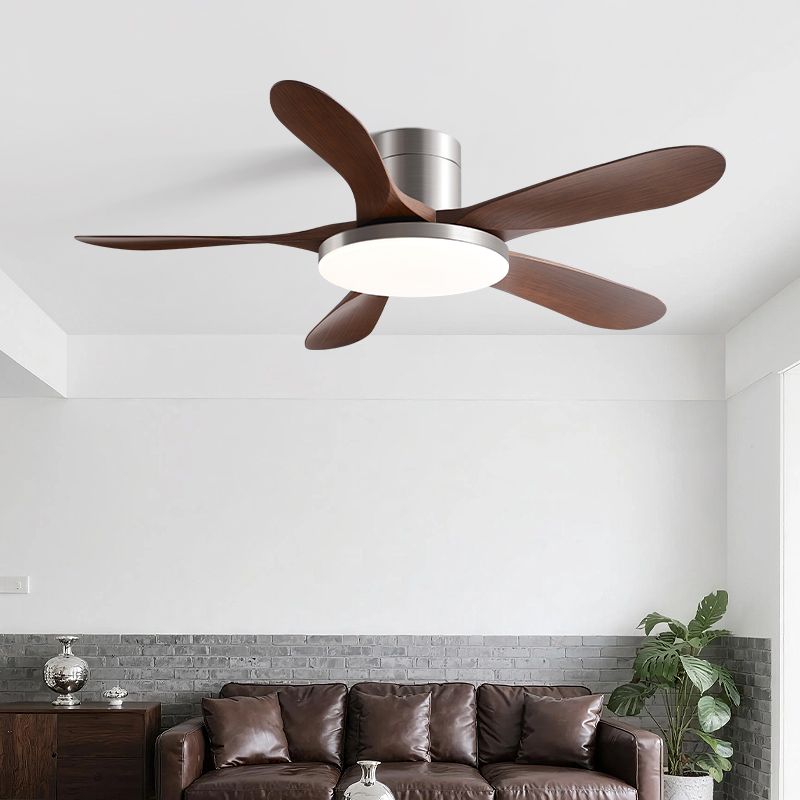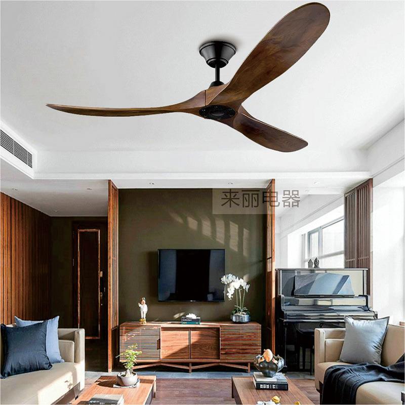 新款52寸大风力客厅风扇灯卧室柔风静音吊扇复古胡桃木色电扇灯