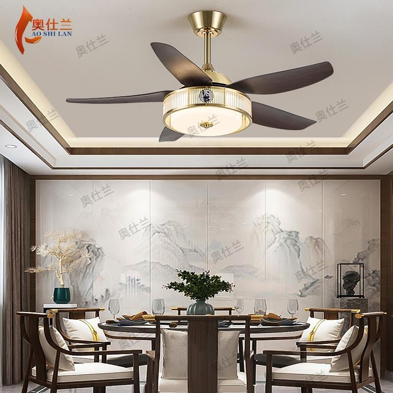 高级感实木风扇灯客厅大风力吊扇复古新中式餐厅卧室电扇灯静音灯