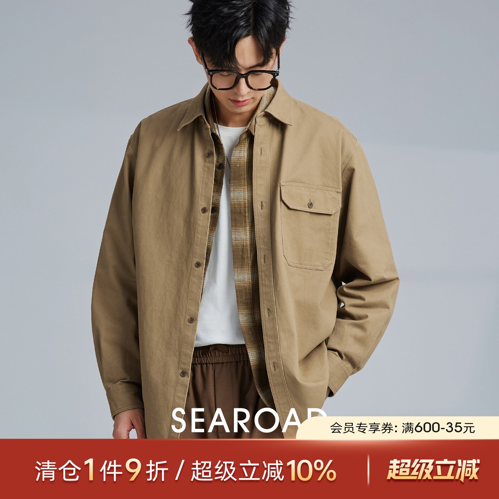 海上公路工装衬衫外套男士25年秋季美式复古宽松版100%纯棉上衣