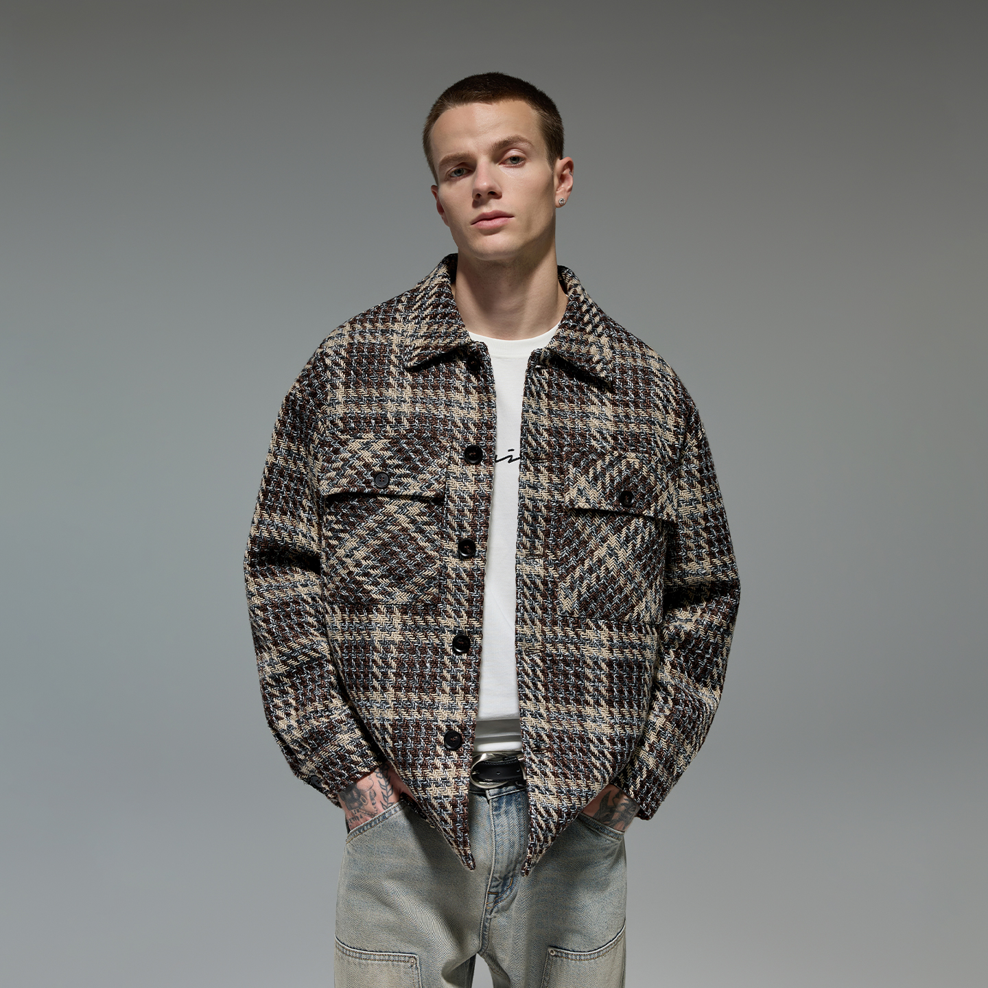 *GXG男装 棋盘格提花时尚夹克通勤外穿式衬衫外套男士 秋冬热卖