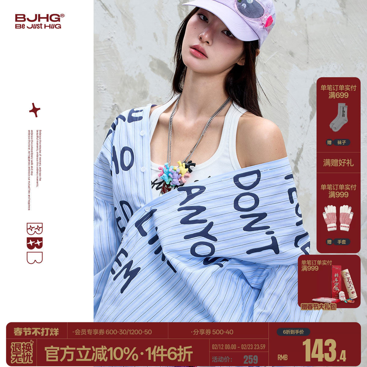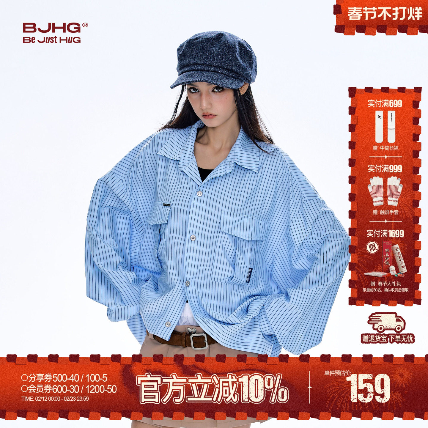 夫胜宽同款BJHG不计后果休闲衬衫外套男款春季条纹连帽情侣衬衣女