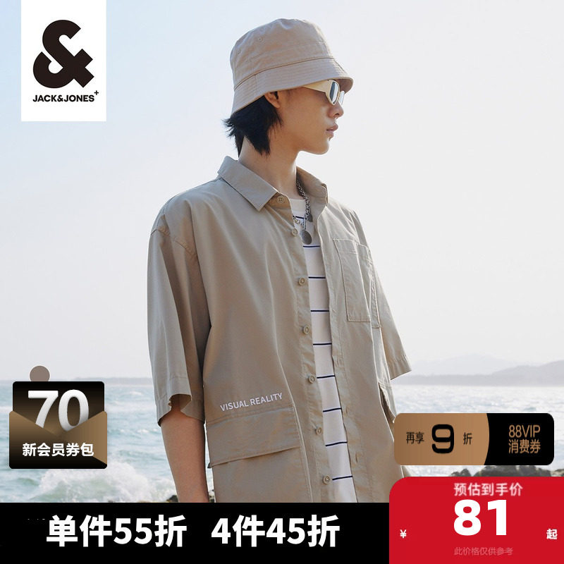 杰克琼斯outlets通勤夏男酷休闲衬衣舒适宽松工短袖衬衫外套男装