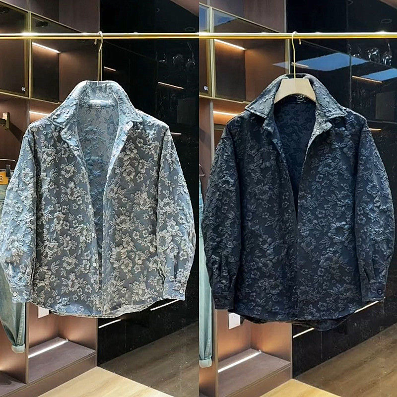 2025春秋浮雕提花设计翻领衬衫外套男女痞帅宽松百搭弧形休闲上衣