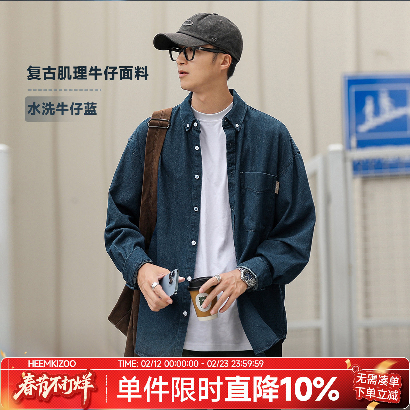 - 牛仔衬衫男潮