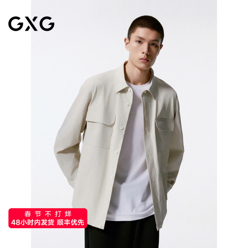 GXG男装 米白色宽松时尚翻领长袖衬衫外套男 24秋品G24X033029