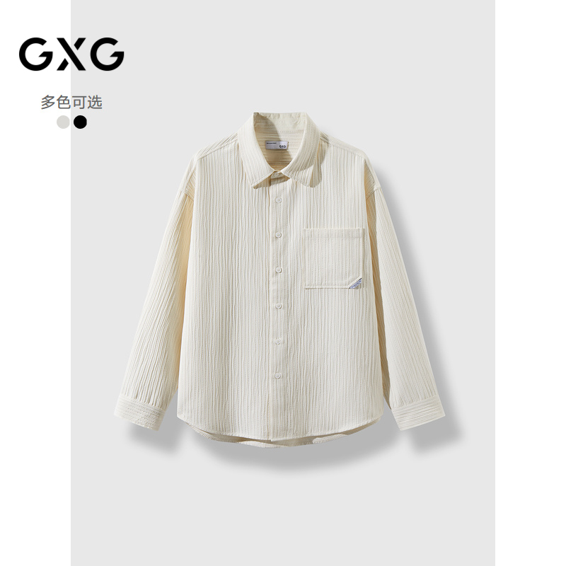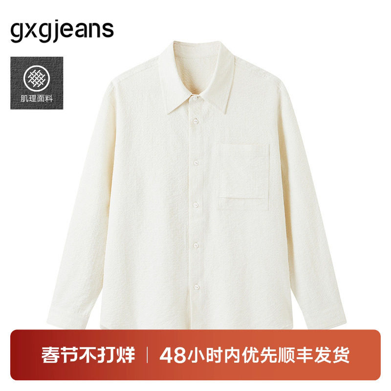 gxg.jeans男装 米白泡泡纱肌理简约休闲长袖衬衫外套男 25春秋款