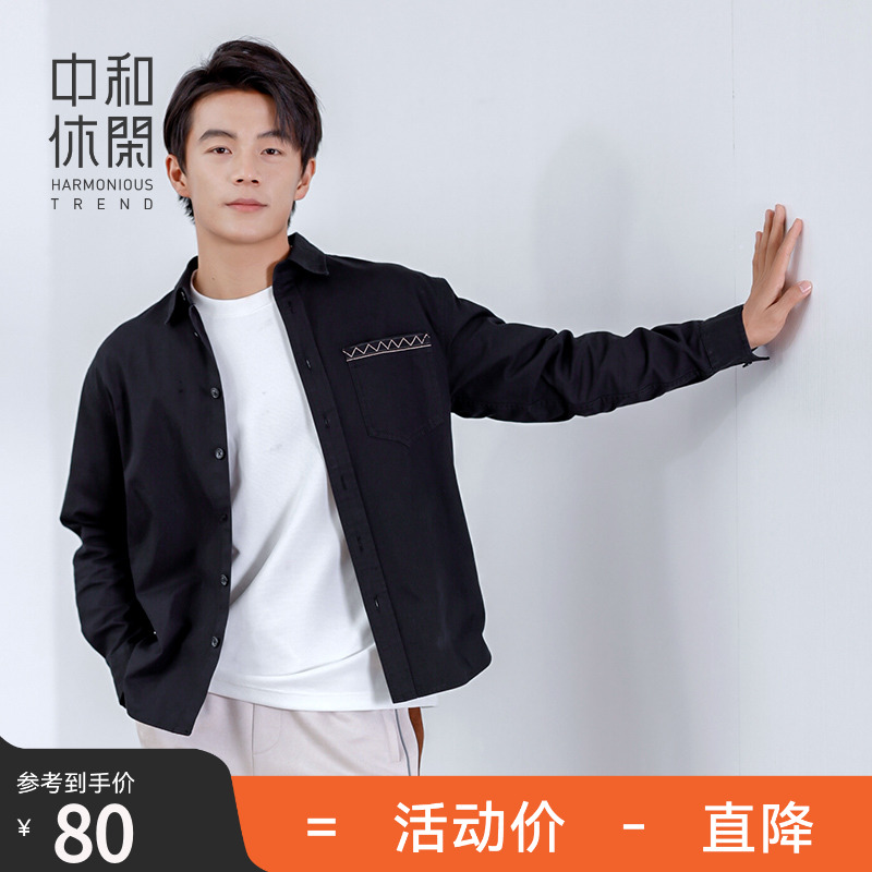 中和休闲宽松简约衬衫外套男2023秋季新款黑色帅气上衣B73162151