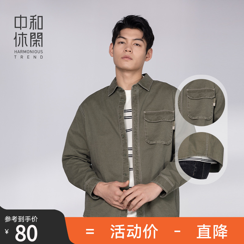 中和休闲军绿色衬衫外套男2024秋季新款美式工装上衣E73161961