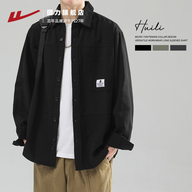 回力衬衫外套男士春秋新款长袖上衣纯棉工装潮牌休闲开衫夹克男款