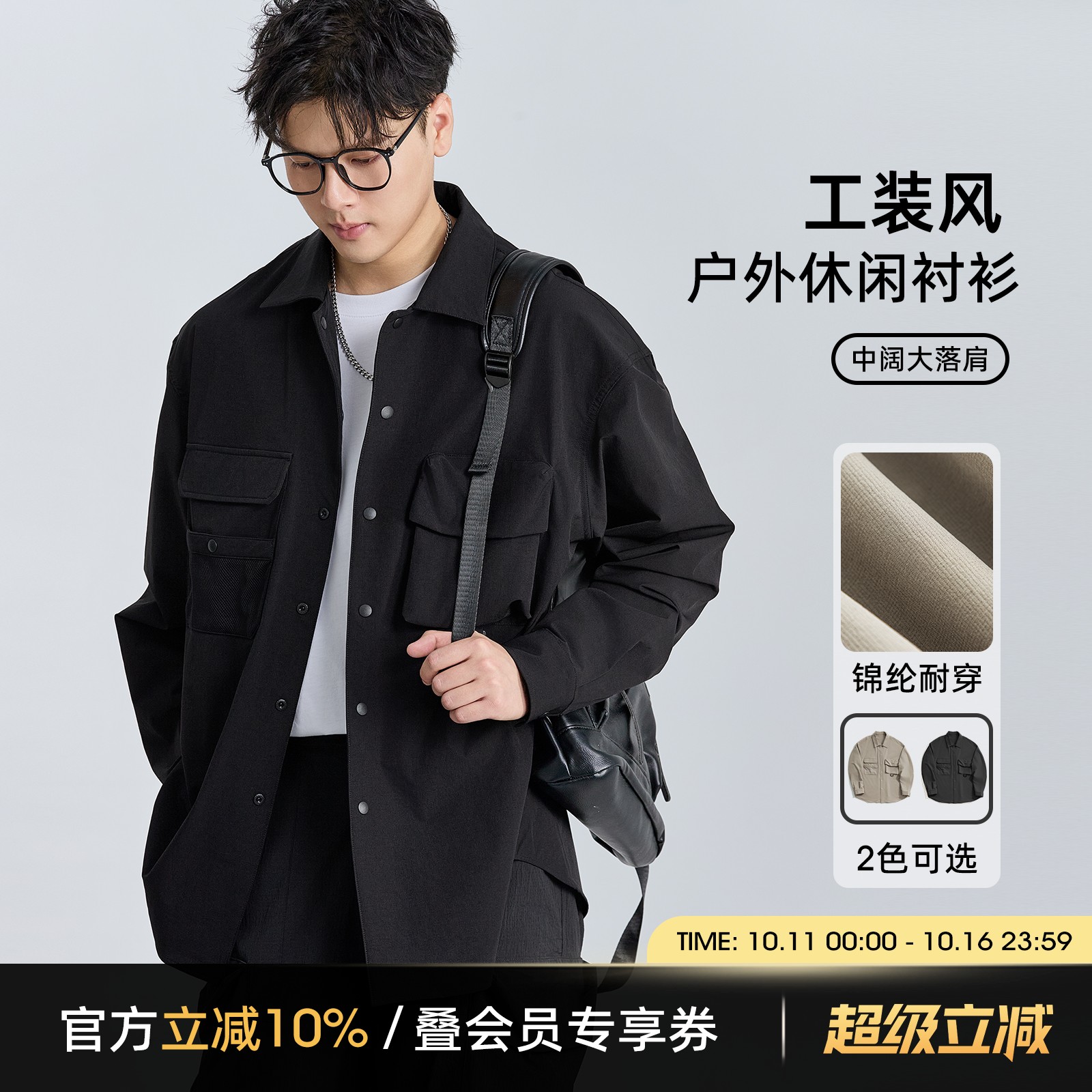 海上公路轻户外工装衬衫外套男春秋季多口袋机能宽松休闲长袖衬衣