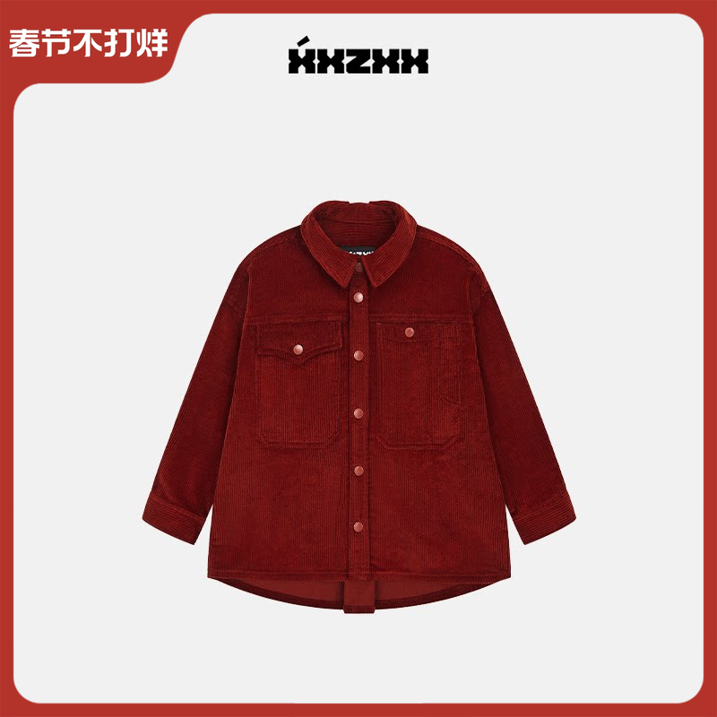 XXZXX复古不对称灯芯绒衬衫外套男女潮牌童装亲子装秋季新款 3101