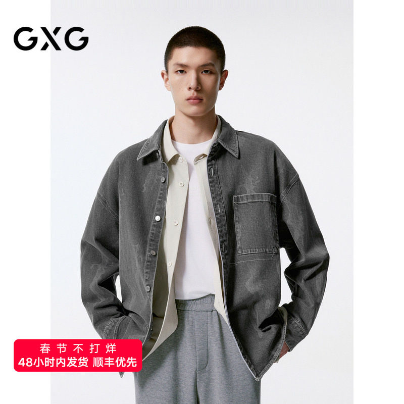 GXG男装花色时尚年轻牛仔衬衫外套男士24年秋季品G24XE93003