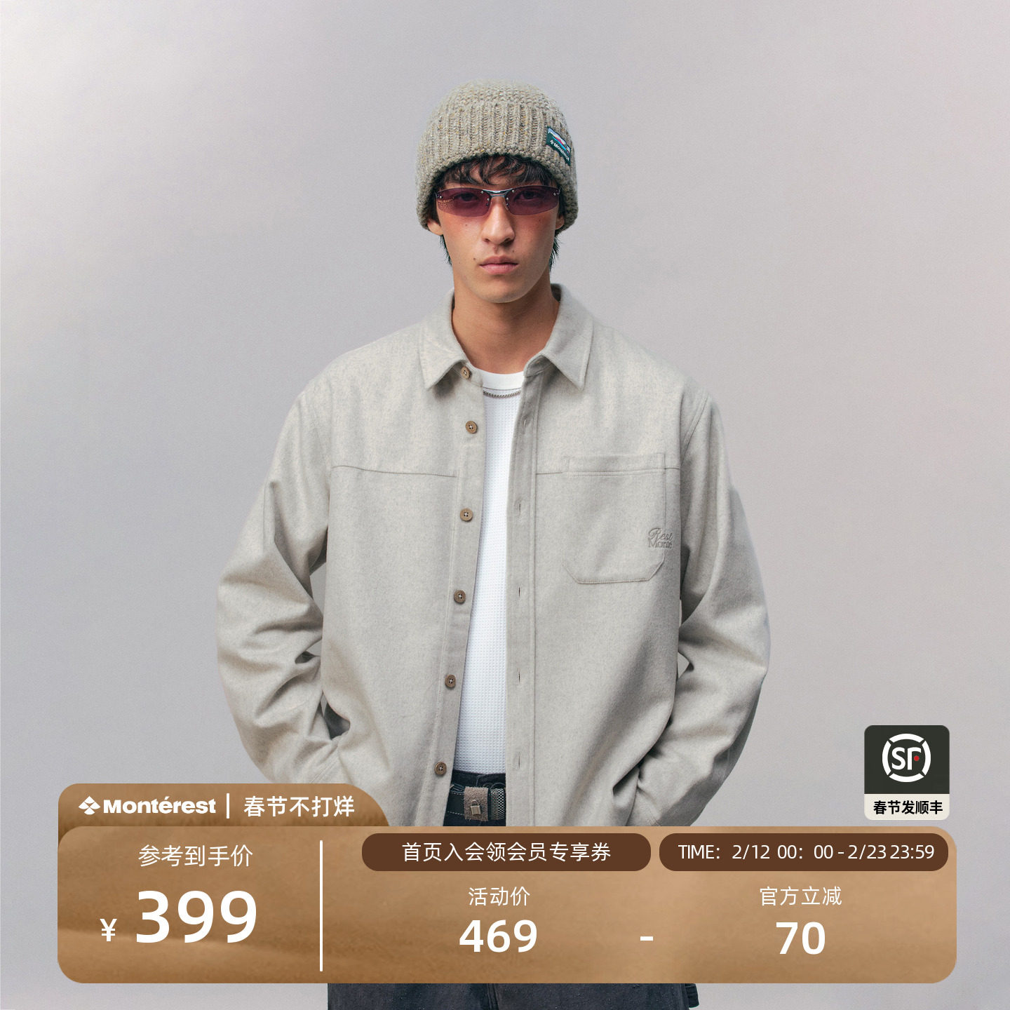 瞬时山野Monterest户外cleanfit复古廓形羊毛翻领休闲衬衫外套男