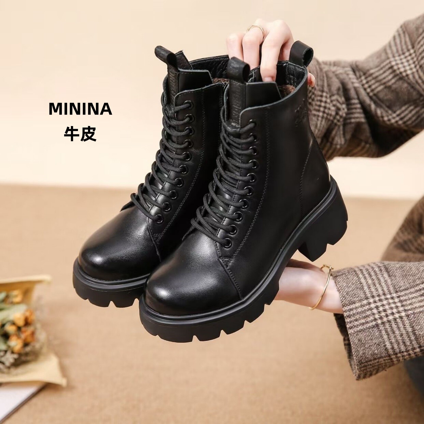 纯皮马丁靴女轻便软底时尚显脚小个子2025广州高定英伦擦色短靴冬