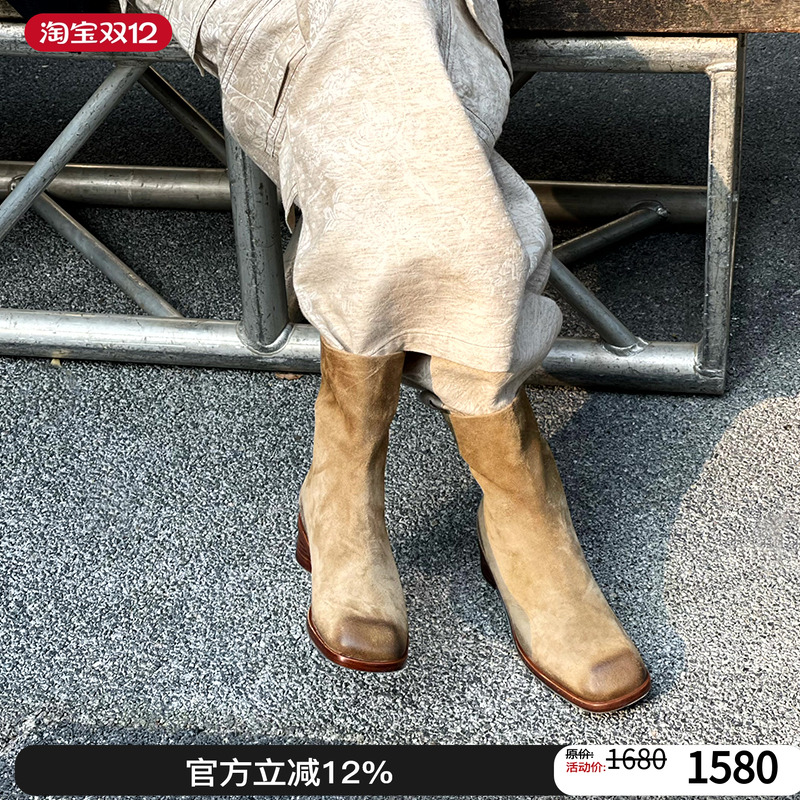金靖同款AFFLATUS3 2025年Miro西班牙牛绒靴子女手工脏染擦色短靴