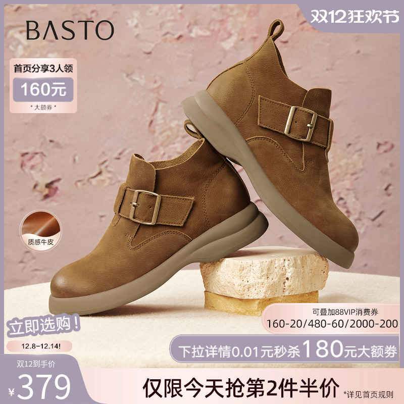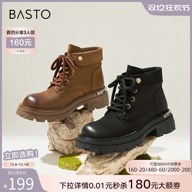 百思图2025冬季商场新款牛皮擦色马丁靴大黄靴休闲女短靴S2263DD5