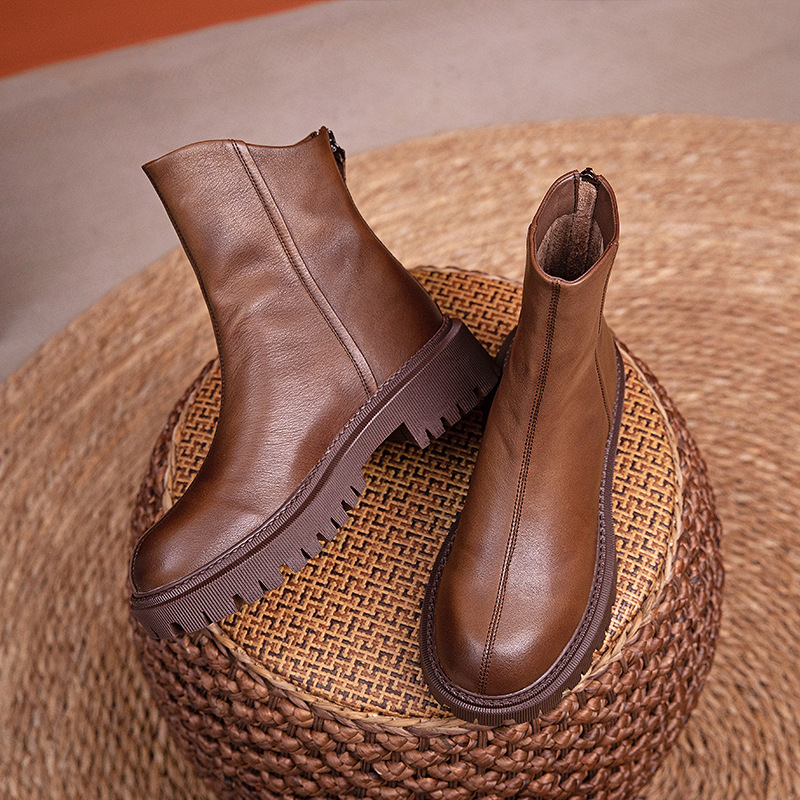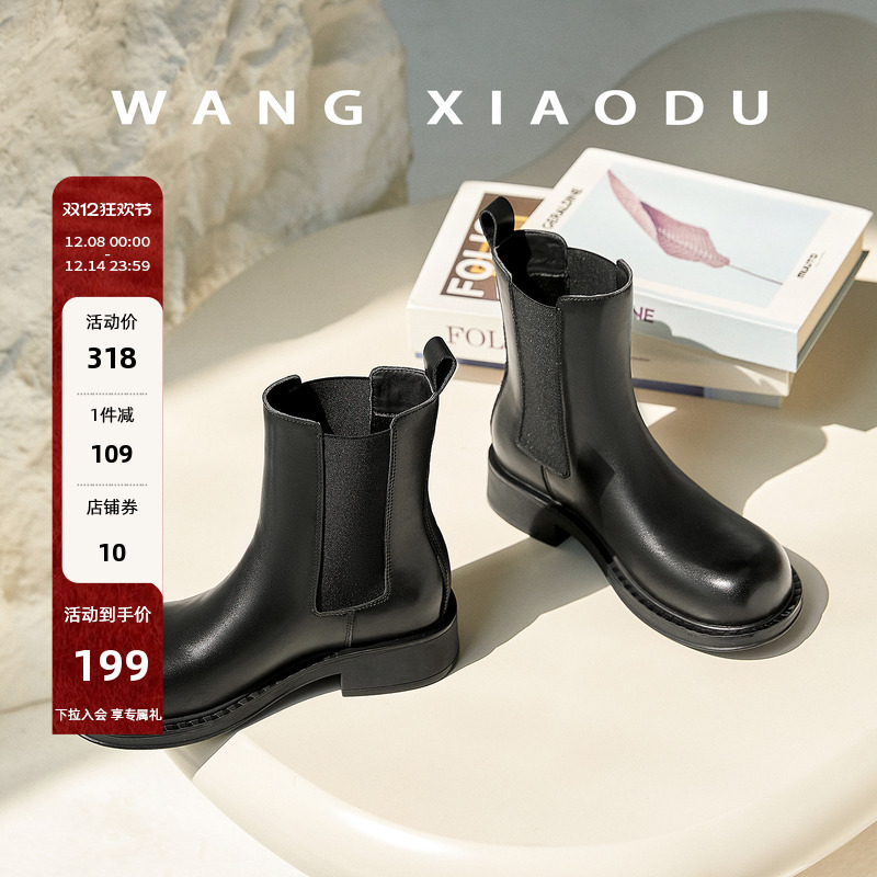 【王小毒】城市旅居●4cm厚底切尔西靴女短筒粗跟圆头擦色短靴