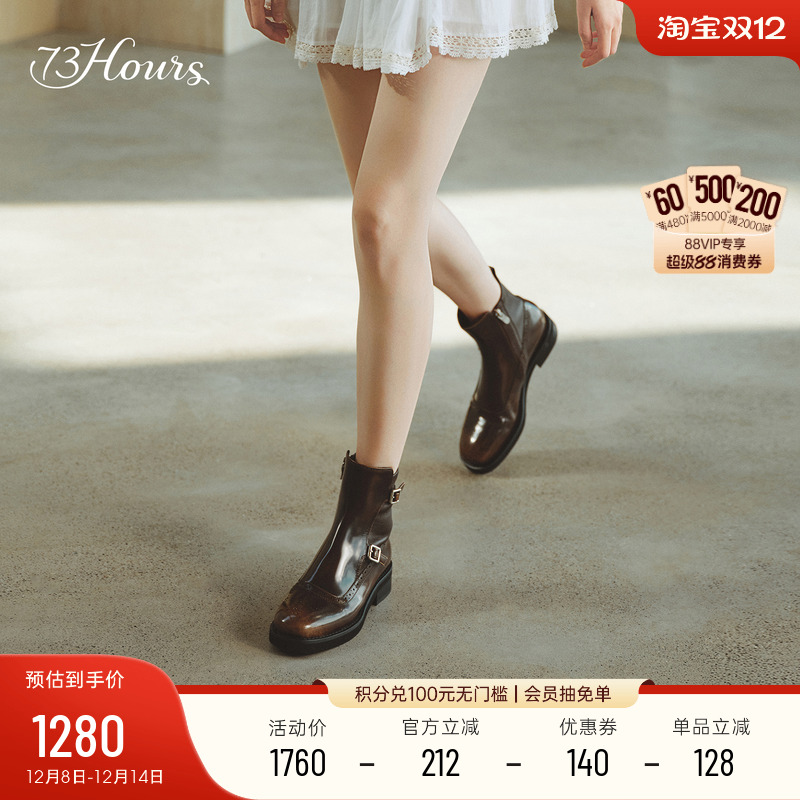 73hours女鞋邦德街25冬季新款复古英伦风擦色短靴子弹力切尔西靴