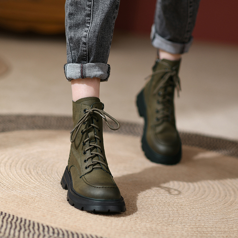 复古真皮厚底擦色短靴女休闲英伦骑士靴保暖加绒马丁靴增高机车靴