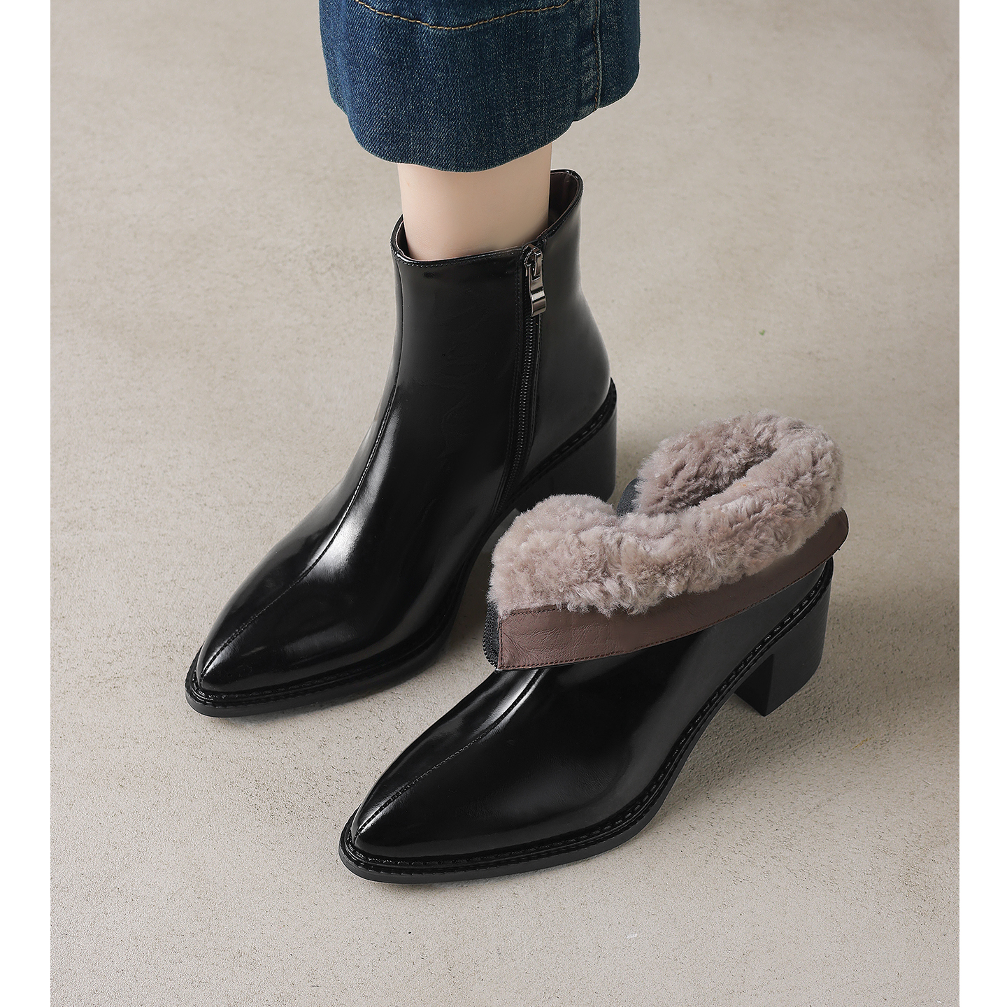 Kmeizu巨显瘦~6.5cm粗跟擦色短靴女秋冬尖头加绒马丁靴商务及踝靴