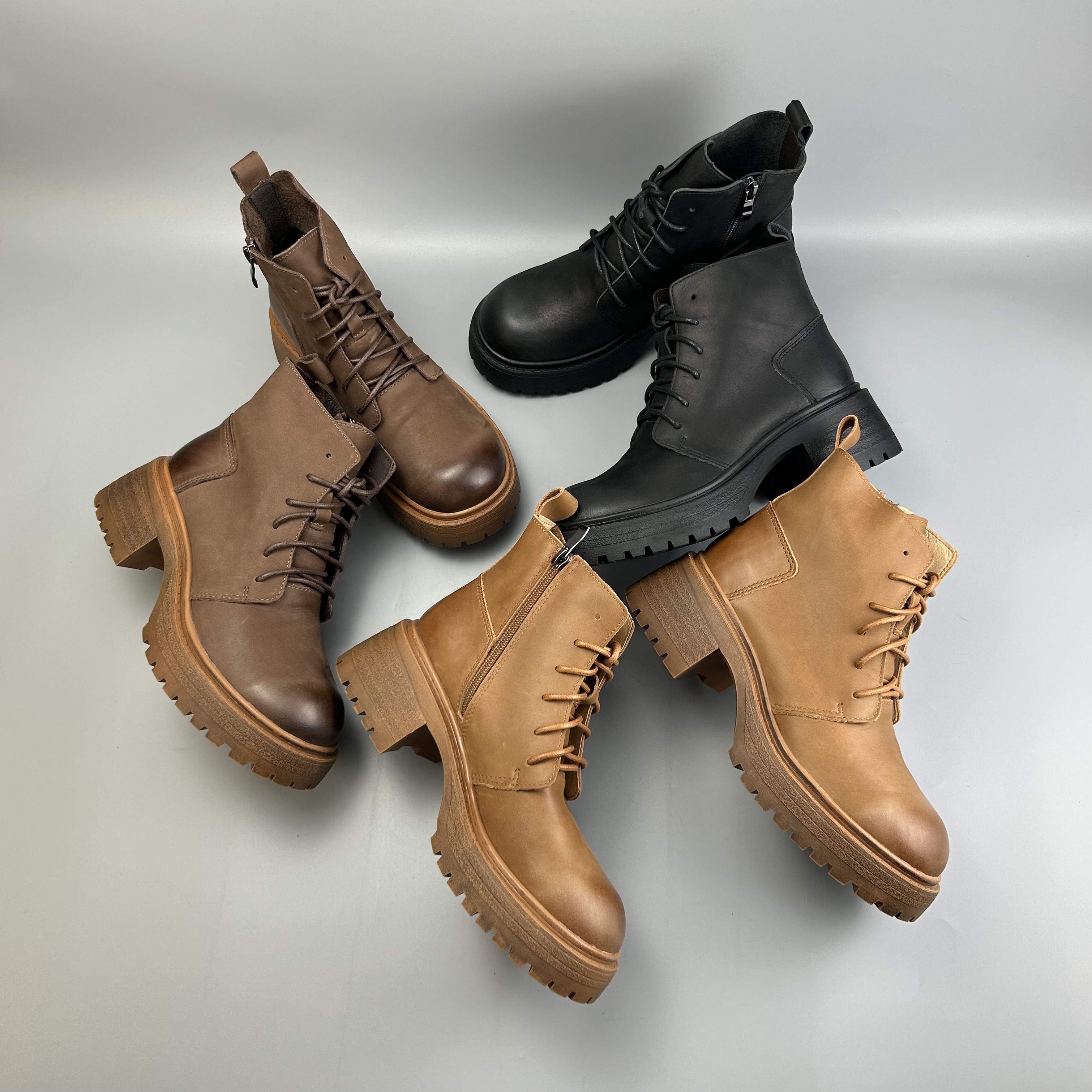 D家16年老店 热销!松糕底牛皮短靴 厚底女靴 欧美范擦色短靴0275