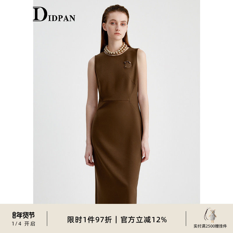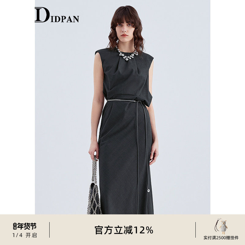 IDPAN女装背心裙秋季新款收腰显瘦简约复古无袖肌理感连衣裙