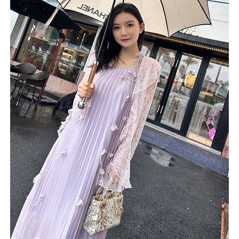 良良家设计感拼接不规则蕾丝背心连衣裙女夏季新款复古叠穿长裙子