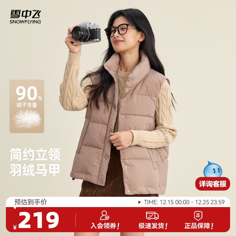 雪中飞2025冬新款羽绒马甲女短款立领韩版通勤简约百搭保暖外套