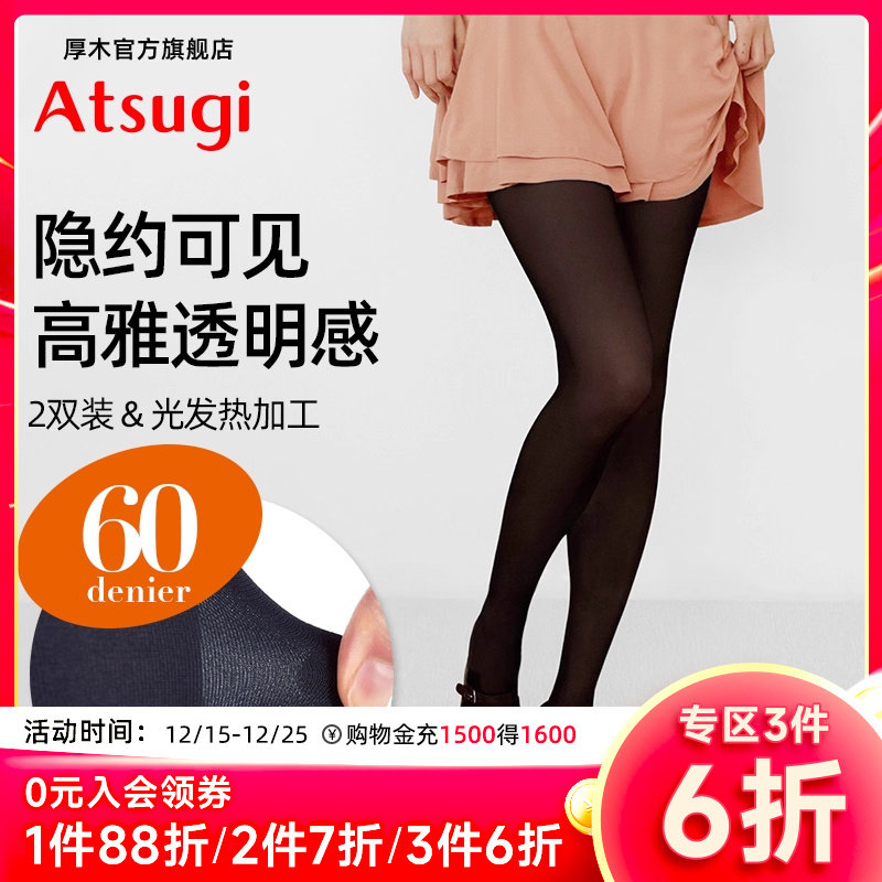 ATSUGI/厚木60D两双装光发热薄款连裤袜透明感春秋打底丝袜