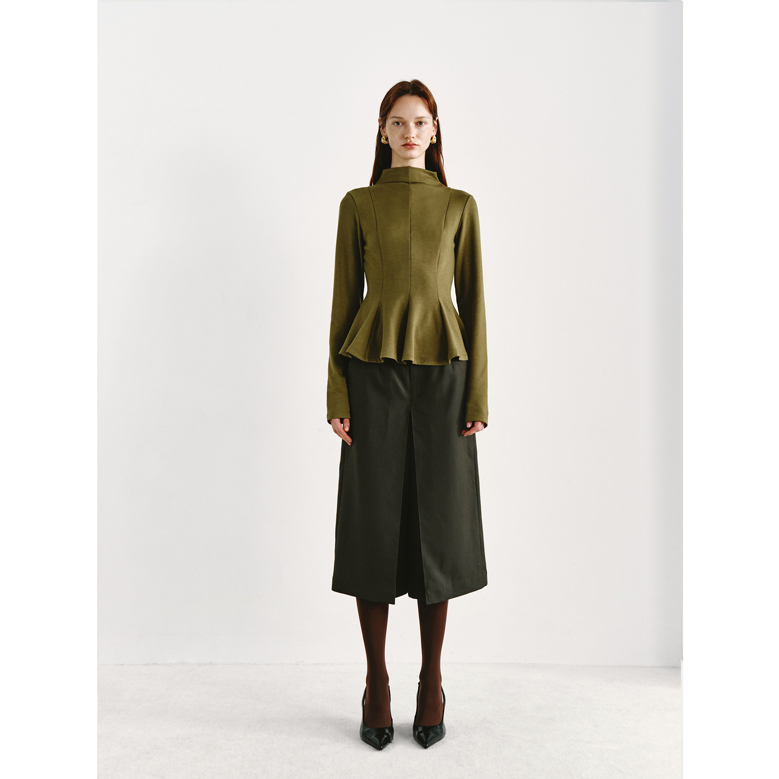 COCOBELLA不对称荷叶边半身裙女25秋新款通勤毛呢长裙HS3091-4