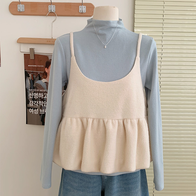 花花家韩系2025秋冬新款小香风荷叶边毛呢吊带背心女叠穿减龄上衣