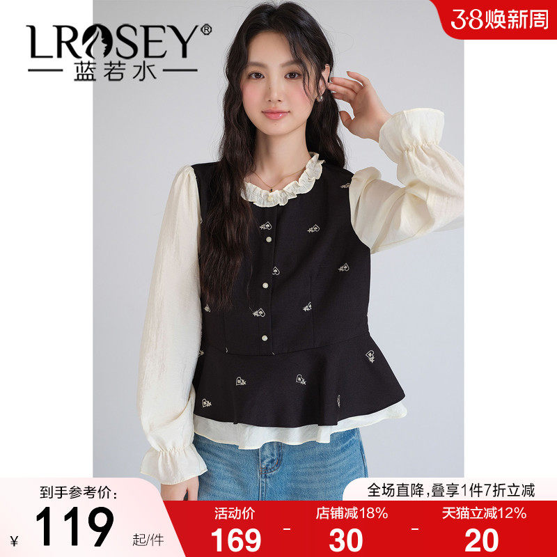 【韩系千金风绣花衬衫】蓝若水大码2026春装新款假两件荷叶边上衣