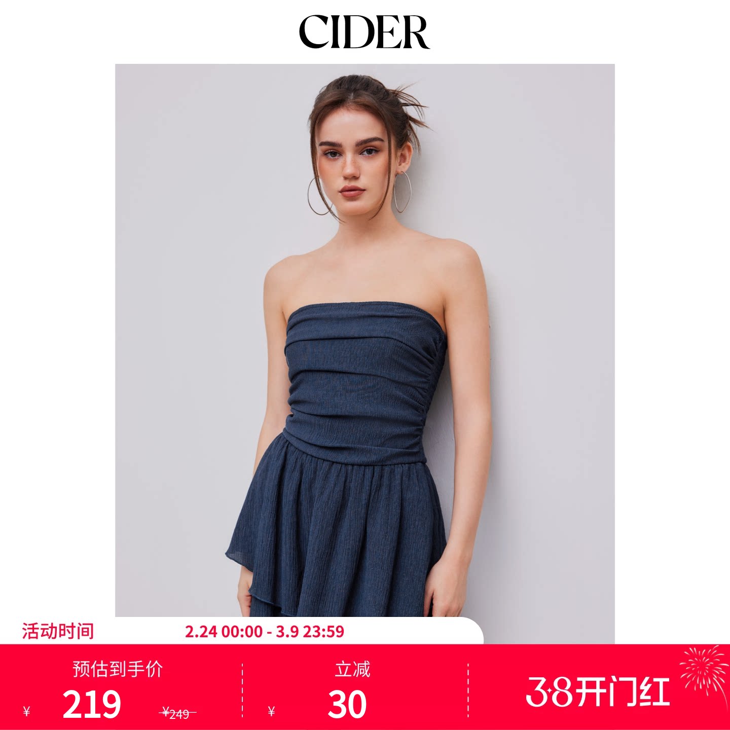 【明星同款】CIDER正品美式褶皱夏荷叶边设计抹胸连衣裙1033637