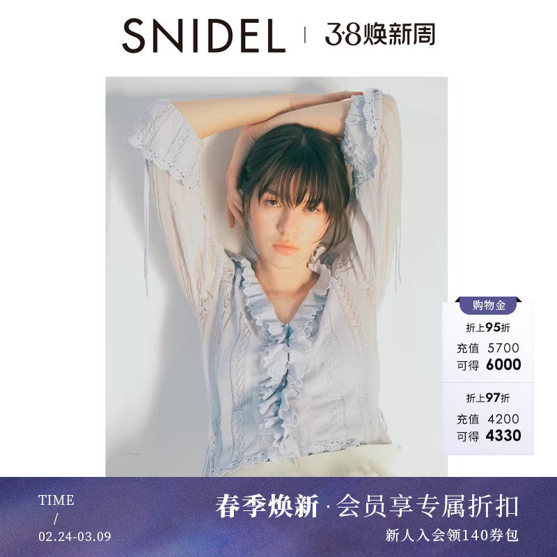 SNIDEL2025秋冬新品Chacott联名薄纱荷叶边小飞袖衬衫SWFB254086