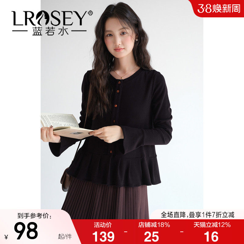 【法式荷叶边下摆针织开衫】蓝若水大码2026春装新款遮肉显瘦上衣