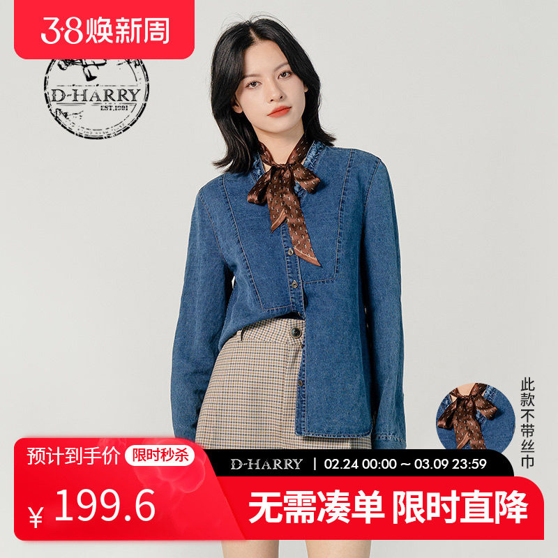 D-HARRY/迪哈利新款复古荷叶边V领牛仔衬衫DH231H95970D