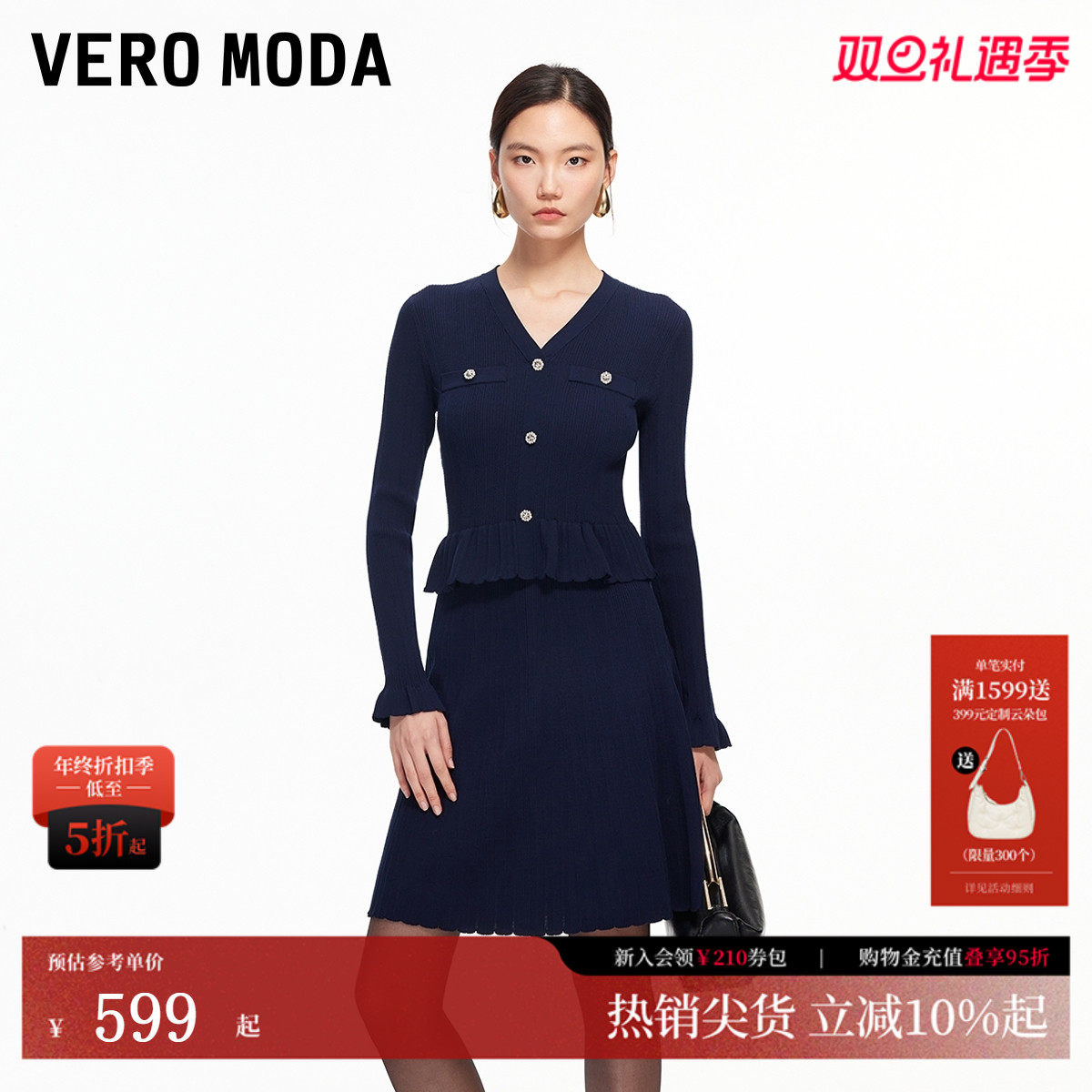 Vero Moda连衣裙2026春季新款V领法式荷叶边拼接针织裙经典时髦