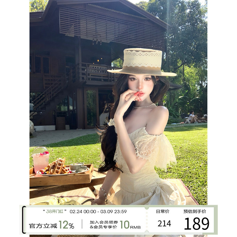 项天鹅er 法式抹胸连衣裙女2026早春新款荷叶边包臀裙度假裙子