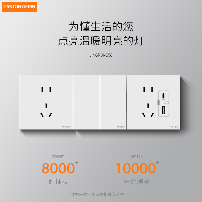公牛暗装86型开关面板家用墙壁16AUSB一开斜五孔多孔插座G06白色