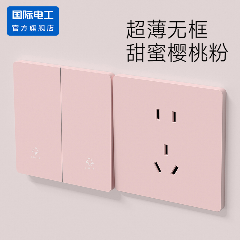 国际电工樱花粉86型开关面板家用墙壁暗装一开双控五孔插座带多孔