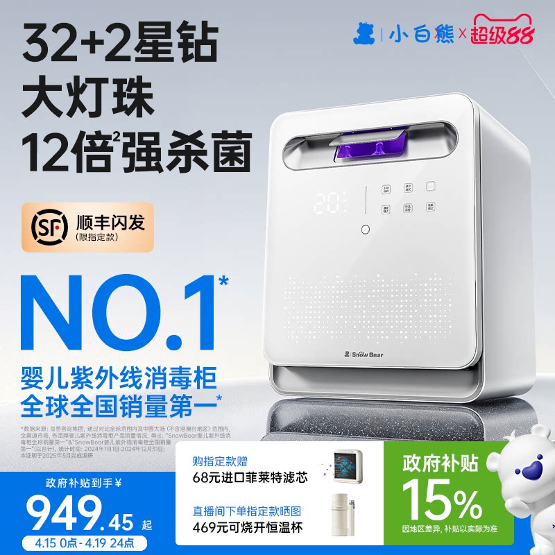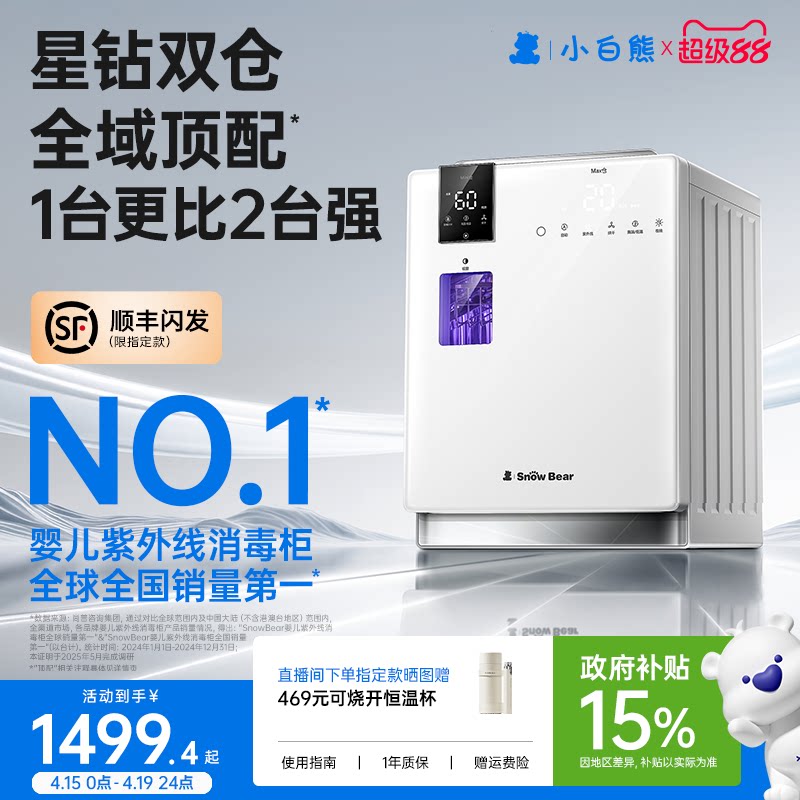 小白熊星钻双仓奶瓶消毒柜婴儿宝宝专用带烘干器紫外线二合一体机
