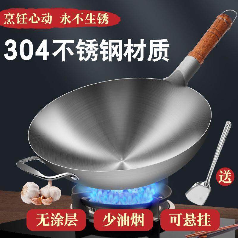 德国316不锈钢炒锅家用不沾锅老式不粘锅无涂层炒菜锅铁锅燃气