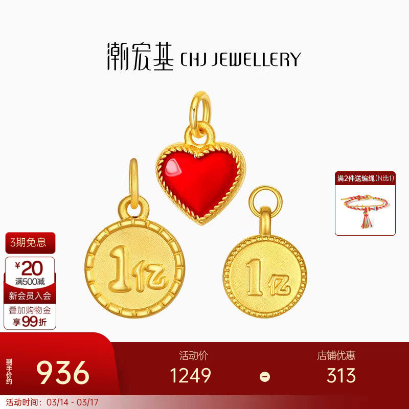 潮宏基好事发生一亿黄金吊坠3D硬金串珠足金转运珠礼物纪念礼物