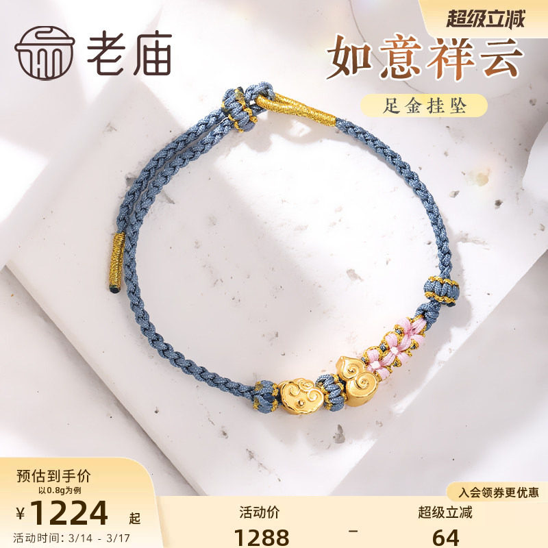 老庙黄金足金3D转运珠孙悟空如意祥云葫芦福禄串珠手绳手饰礼物