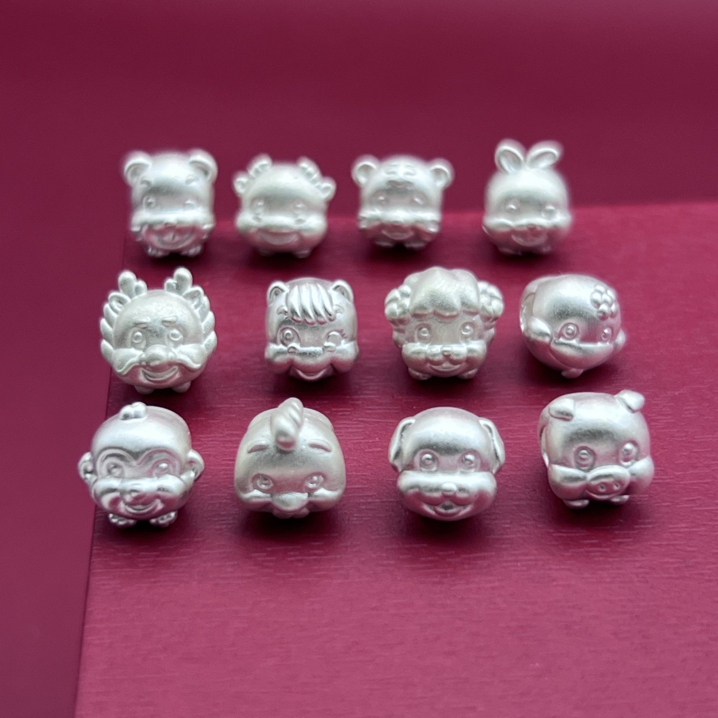 纯银隔珠足银999十二生肖生肖马转运珠配件银饰3D硬银DIY编绳手串